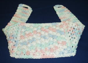 Back Scrubber Crochet 'N' More This is a nice pattern - easy to do and looks nice - My first attempt seemed a little too loose and stretchy. I made it again using a smaller hook and I shortened the "handles." The cotton yarn still stretches quite a bit when it gets wet. I'm not sure what to do about that, but it is still a nice pattern. |